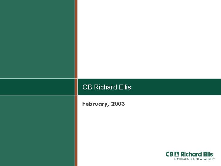The following are slides from a presentation given by representatives of CB Richard Ellis Services, Inc. and Insignia Financial Group, Inc. to certain CB Richard Ellis employees on February 24, 2003: