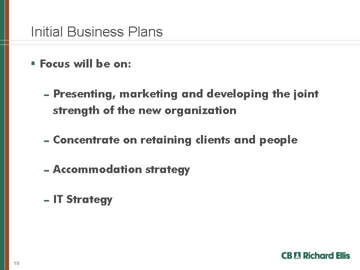 Upon closing, the combined company will operate globally as CB Richard Ellis, and is expected to: